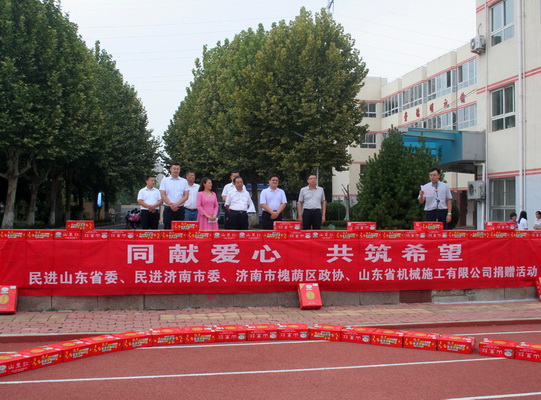 2018年9月13日下午16:00時許,由(yóu)槐蔭區政協(xié)、民進欧美91av省委、民進濟南市委、欧美91av省機械施工(gōng)有限公司聯合主辦(bàn),欧美91av省機械施工有限(xiàn)公司承辦的“同獻愛心,共築希望”的愛心捐贈活(huó)動,在濟南市特(tè)殊(shū)教育中心隆重舉行,以體現社會各界人士對(duì)殘(cán)障少年(nián)兒童的關愛及企業的社會責任。參加此次捐贈活動的領導有市人大常委、民進濟南市委(wěi)副主委劉海萍、槐蔭(yīn)區(qū)政(zhèng)協主席徐賓、民進(jìn)欧美91av省委組織部部長薑軍鋒、民進(jìn)濟南市委辦公室主任王洪偉(wěi)、欧美91av省機械施工(gōng)有限公司董事長沈繽、欧美91av(dōng)機施公司財(cái)務總監(jiān)徐(xú)占全、副總經理楊明、劉誌勳、工會主席賈學偉。濟南特殊教育中心書記韓坤(kūn)及在校師生共300餘人參加了此次捐贈活動。