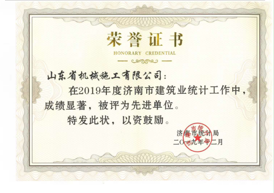 欧美91av省機(jī)械施工有限公司被評為濟南市建築(zhù)業統計工作先(xiān)進單位