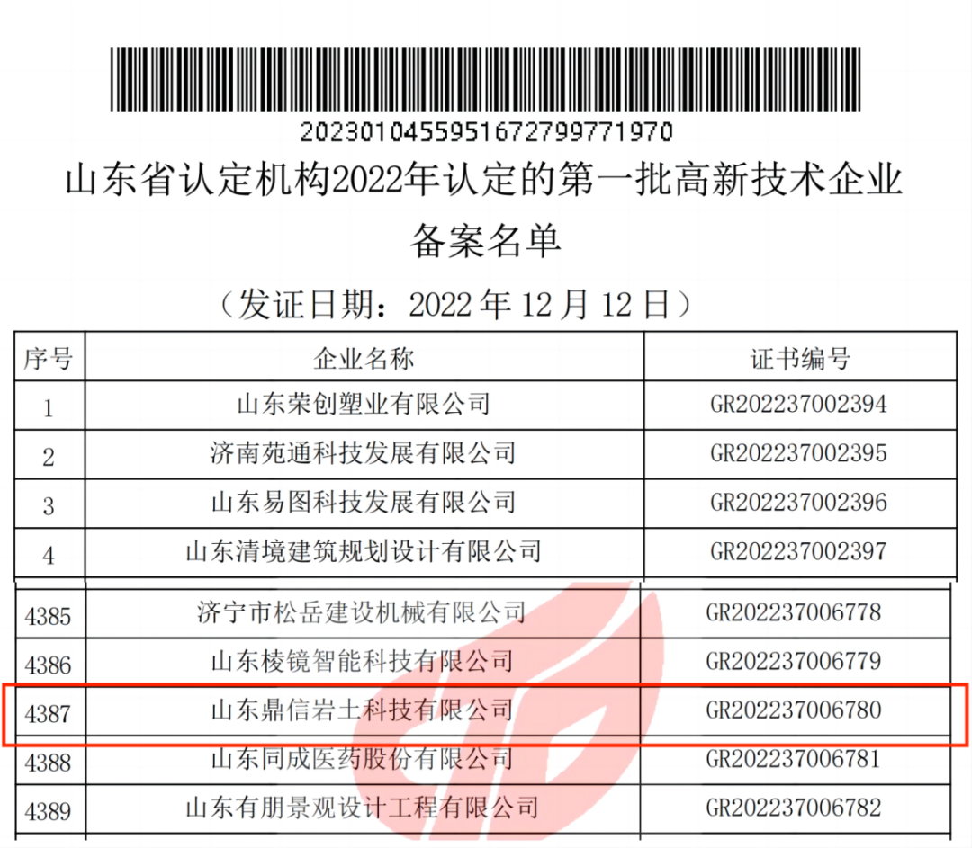 新春將至,喜報(bào)頻傳,熱烈祝賀(hè) 欧美91av省機(jī)械施工有限公司全資子公司 欧美91av鼎信岩土科技有限(xiàn)公司 榮獲(huò)國家級(jí)“高新技術企業”殊(shū)榮。