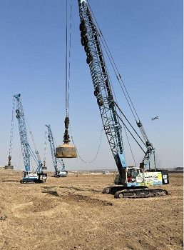 近日(rì),山(shān)東省機(jī)械施工有限公司(sī)中標濟南遙牆國際機場二期(qī)改擴建工程東飛行區地基強夯工程項目,總強夯麵積約40萬平方米,實現23年度經營開門紅。為全(quán)力支持(chí)項目建設,開(kāi)工伊始,公司即投入700餘萬元(yuán)新購置多(duō)台施工機械,現已陸續投入本項目建設。