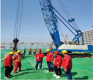2月26日,第三分公(gōng)司中德產業園指揮部組織試夯施工。在試夯(bèn)過程中,發現難以拔錘且達不到停錘標準(zhǔn)。分公司領導高度重視,邀請公司總工程師、工程技術應用研究員(yuán)周廣泉總(zǒng)到現場指導(dǎo)工作。周總現場了解情況後,便與總包單位溝通後期基礎形式以及回填情況,最終(zhōng)方案定(dìng)為在原地表上回填1m素填土(tǔ)作為起夯麵,再進行強夯施工。通過此方案進行試夯,有效解決了拔錘困難問題,可正常施工,得到總(zǒng)包單位的高(gāo)度認可。