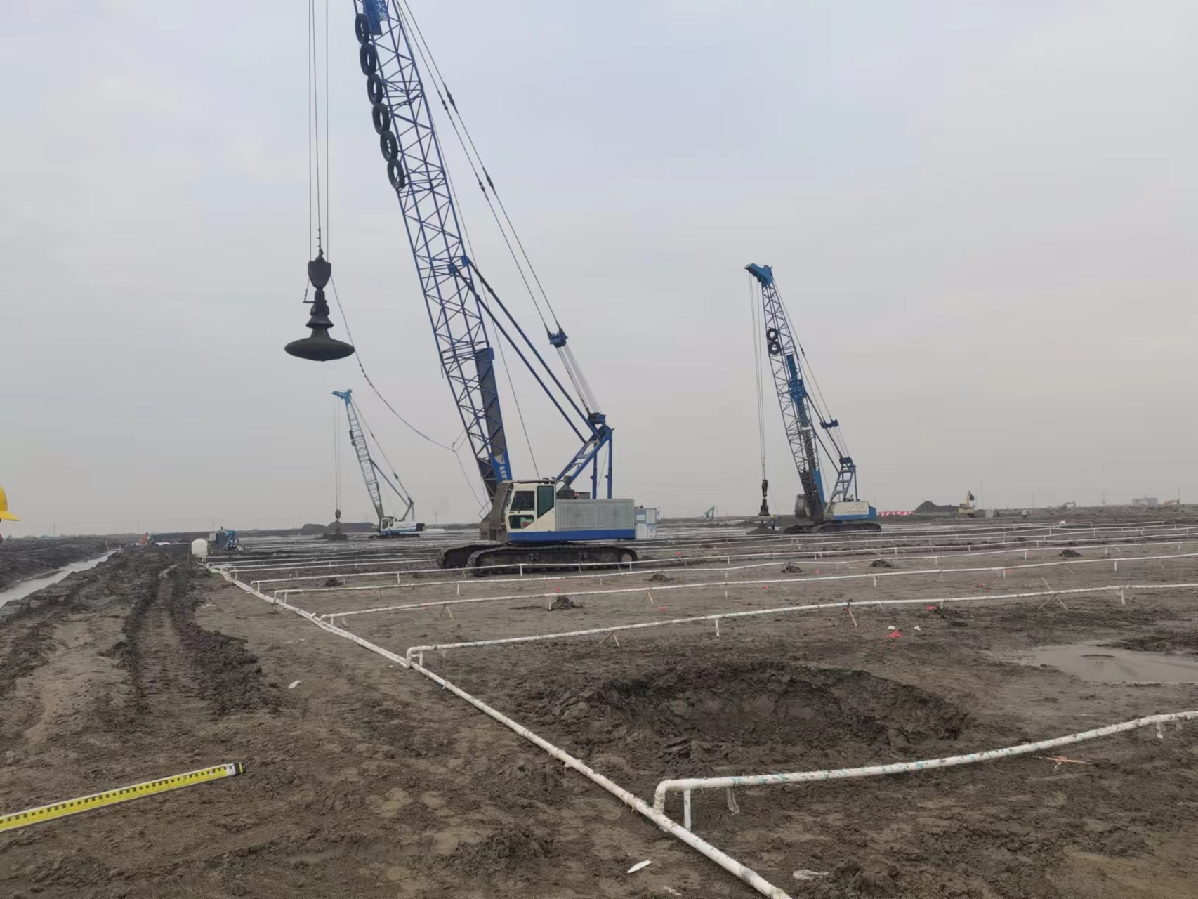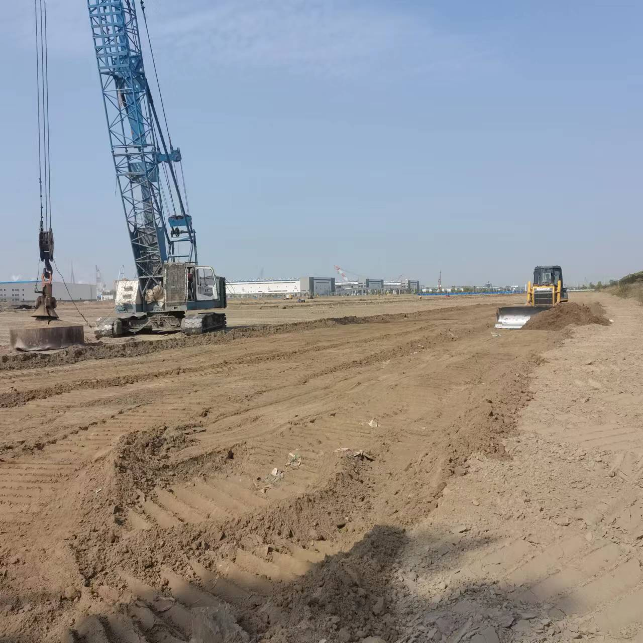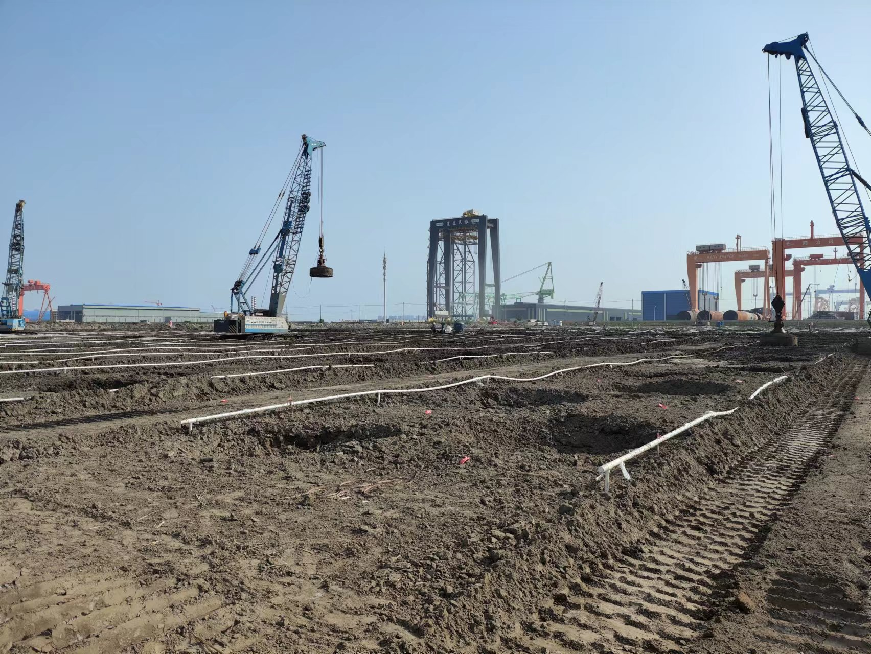 江蘇南通高端建築智能(néng)製造產業基(jī)地項目,為通州灣示範區(qū)今年春季集中開工(gōng)的重大項目之一,也(yě)是中(zhōng)鐵四局落子南通的重大戰略部署,用地約495畝,總投(tóu)資20億元,建成後將成為行業領先、國內(nèi)一流的現(xiàn)代化鋼結構產業基地。本項目地基處理麵積(jī)15萬平方米,公司中標後快速行動,組織4台強夯機、10台套降水設備進場施工(gōng),目前工程正在緊張施工中(zhōng)。