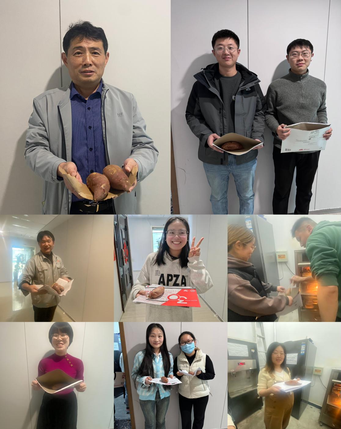 剛(gāng)出烤箱的蜜薯冒著熱氣,外皮看上去金黃焦糊。撕開外皮,一股香氣撲鼻而來,接著(zhe),金黃的地瓜肉和亮閃閃(shǎn)的地瓜油呈現在眼前,讓(ràng)人垂涎欲(yù)滴。中午,香甜的蜜薯(shǔ)發放到員工們的手中,大家掂著營養豐富、馥鬱香濃的烤蜜薯,臉上洋溢著幸福(fú)的笑容,深切感受到公司的溫(wēn)暖與關懷,幸(xìng)福感油然而升……