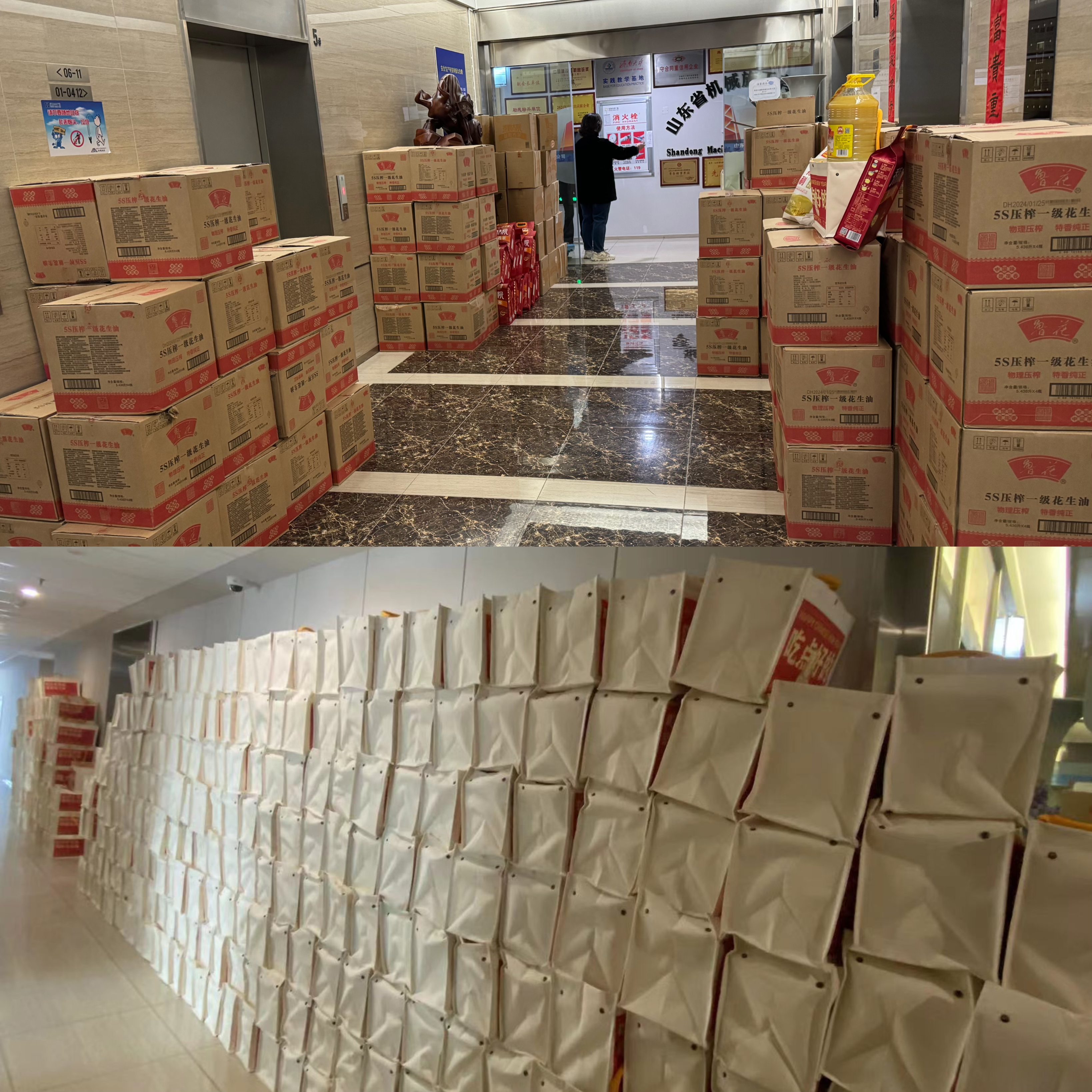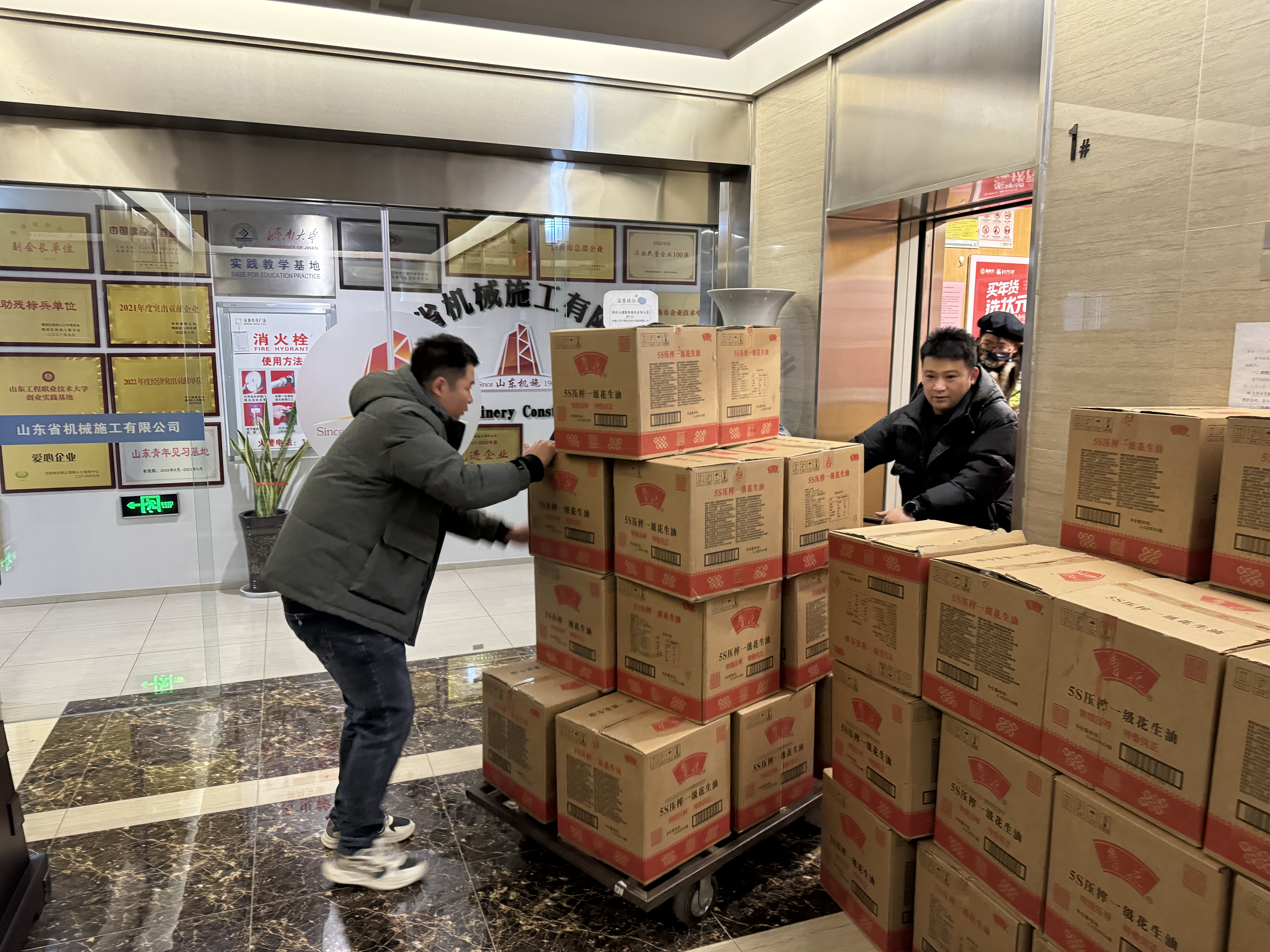 由於配發的物資實在太多,部分員工還出動(dòng)了(le)小(xiǎo)推車來搬年貨,幸福的笑容洋溢在臉上,溫馨祥和的氛圍漫過了冬日的嚴寒。