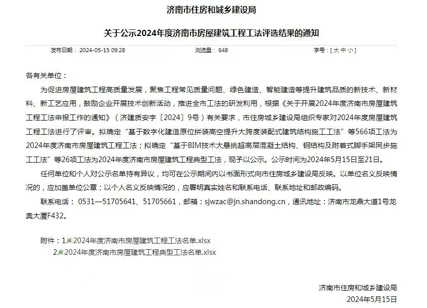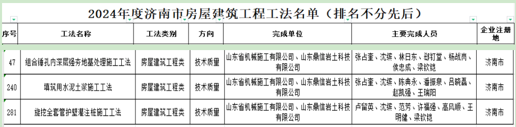 近日,濟南市住房(fáng)和城鄉(xiāng)建設局公布2024年度濟南市房屋建築工(gōng)程工(gōng)法評選結果,公司申報的《組合錘(chuí)孔內深(shēn)層強夯(bèn)地基處理施工(gōng)工法》《填築用水泥土漿(jiāng)施工工(gōng)法》《旋挖全套管護壁灌(guàn)注樁施工工法》三(sān)項工法全(quán)部入選,獲評2024年度濟南市房屋建築(zhù)工程(chéng)工法,標誌著公司科技創新工作又取(qǔ)得了新的突破。